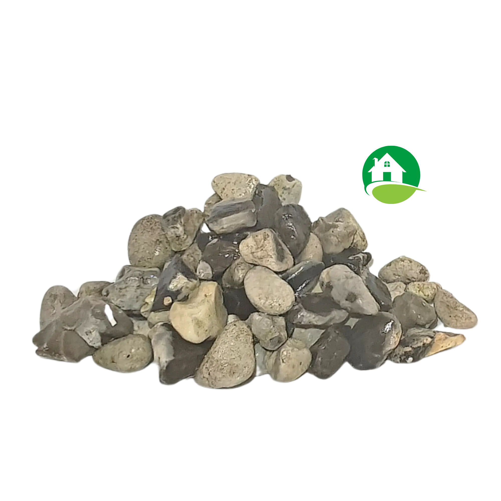 - Sømateriale: Udvindes fra havet og har naturligt afrundede kanter og et stort farvespil, der ligner sten på en strand.